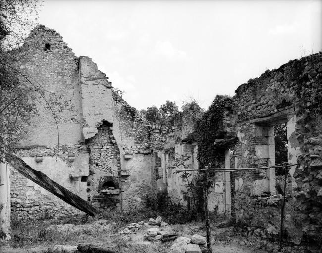 Logement à un étage carré sur l'ensemble ouest et reste des bâtiments en rez-de-chaussée ; remise et écuries perpendiculaires au cellier et toit en appentis ; pignon découvert sur le cellier ; le bâtiment sans toit ni plancher possède une cave semi-enterrée creusée dans le versant du val parallèlement au bâtiment.