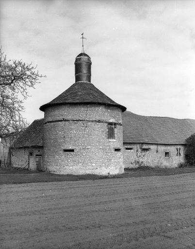 Colombier dont le toit conique couvert de tuiles plates est surmonté d'un lanternon cylindrique à dôme aveugle couvert d'ardoises.
