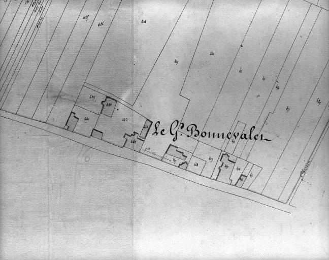 La comparaison des limites du territoire de Beaugency à la fin du XVIIIe siècle et la limite sud-est actuelle de la commune de Villorceau, permettent de préciser qu'une petite partie du territoire de Beaugency à été distraite au bénéfice de Villorceau, sans doute durant la Révolution. Ensuite, en vertu des dispositions de la loi du 19 juillet 1845, les hameaux de Villevert et de Villemarceau ont été détachés de Cravant (sections G, H, et I du plan d'assemblage napoléonien de 1827) et une partie de celui de Loynes et le lieudit les Grottes (sections E et F du plan d'assemblage) l'ont été de celui de Tavers pour agrandir à nouveau la commune (planche II). Villorceau s'étendait donc sur un territoire particulièrement étroit durant l'Ancien Régime. Actuellement, le village, qui s'étire de part et d'autre de la mairie et de l'église, le long de la route départementale 919, n'était pas construit avant 1827. Seuls les écarts de Monthenolle, les Grand et Petit Bonnevalet, Loynes, la Bordière et le Mée l'étaient. L'ancienne église était édifiée dans le cimetière près du lieudit l'Aumône hors de toute agglomération. Il n'y avait donc pas de centre proprement dit. L'édification de la mairie en 1853 au bord de l'actuelle RD 919 et, en 1860, de la nouvelle église, presque en face, au sud du lieudit Monthenolle, après la destruction de l'ancienne (voir IA45000093) , modifièrent le centre de gravité de la commune. Le village s'est vraisemblablement agrandi autour des deux nouvelles constructions emblématiques de la commune afin de créer une liaison avec Monthenolle et Bonnevalet, à moins que ce ne soit l'inverse, de nouvelles fermes et maisons en précédant l'édification.