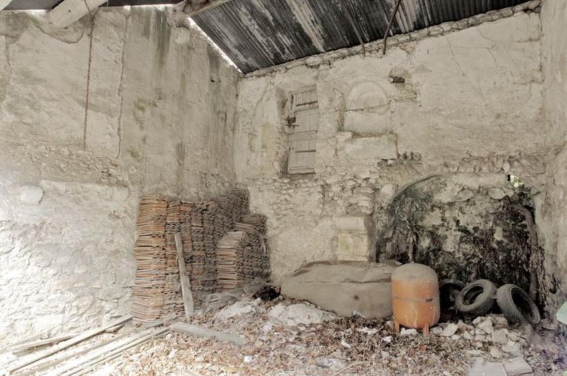 La maison de gauche, qui n'a qu'un seul niveau en rez-de-chaussée et une pièce d'habitation, présente extérieurement une dalle d'évier avec son souillard au niveau du sol sous la fenêtre. Pas de lucarne mais accès au grenier en surcroît par une porte haute, postérieure à la maison, percée sur le pignon gauche. La maison de droite, plus complexe, et à deux niveaux, a été implantée sur un terrain en déclivité. On pouvait ainsi y accéder au rez-de-chaussée, du côté de la rue, et à l'étage par la porte ouvrant sur la façade postérieure dont on aperçoit l'encadrement intérieur. A la droite de cette porte se trouve une niche d'évier disposée sous un arc de décharge cintré comparable à d'autres exemples recensés ici ou là sur le canton (évier ayant certainement une dalle percée d'un souillard) [il n'est pas possible d'accéder à ce niveau par la rue ni du côté de la façade postérieure pour vérifier]. Le plancher placé entre les deux niveaux de la maison était constitué d'une poutre transversale portant sur des pilastres dont un exemple est conservé sur le mur du fond. Des solives disposées perpendiculairement reposaient sur la poutre et une sablière portée par deux corbeaux visibles sur le mur de gauche. A droite, le mur pignon conserve des vestiges de piédroits de 2 cheminées, une par niveau. A l'origine le mur mitoyen de ces maisons montait au-dessus du niveau actuel et servait de pignon à la maison droite tandis que la maison gauche venait s'appuyer dessus (voir le doc. 53 du dossier village, en bas à droite de la reproduction d'un dessin de 1888 qui représente les 2 maisons avant l'effondrement du mur gouttereau de la seconde d'entre elles - ce document permet de préciser que cette dernière était éclairée par une fenêtre ou croisée au rez-de-chaussée et sans doute par 2 croisées à l'étage). Présence d'un arc de décharge en anse de panier sur le mur de fond de la moitié droite du rez-de-chaussée.