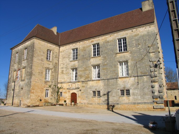 Bâti à proximité de l'église, le château se compose de deux corps de bâtiment en T et d'une vaste cour rectangulaire, au nord, qui était entourée de plusieurs bâtiments dont les fonctions et la chronologie demanderaient à être identifiées : le bâtiment nord, ruiné, conserve les traces d'une voûte et des archères au deuxième niveau.£L'aspect du logis est aujourd'hui celui d'une construction du 17e siècle pour le corps principal, et du 18e siècle pour le corps ouest. L'examen des élévations montre cependant que les maçonneries des bâtiments du Moyen Age ont été en partie conservées : dans l'élévation nord du corps principal, au rez-de-chaussée, une grande porte couverte d'un arc brisé a été surhaussée, et une porte ornée d'une accolade, percée dans une maçonnerie antérieure, apparaît au deuxième étage ; l'angle sud-est du corps ouest est chanfreiné en partie basse, et dans l'élévation est subsistent le piédroit d'une baie au niveau du premier étage et un linteau échancré en arc au niveau du deuxième étage.£Des pierres en attente à l'extrémité est du corps principal indiquent qu'une deuxième aile en équerre était prévue au 17e siècle. La porte d'entrée, rejetée sur le côté, est ornée de pilastres toscans. Elle donne accès à un grand escalier à volées droites et mur noyau, ainsi placé à la jonction des deux corps de bâtiment dont il dessert les étages.£Une terrasse haute est plantée d'une rangée de tilleuls.