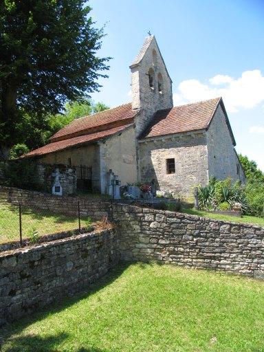 L'église se compose de deux nefs accolées, dont les toitures à longs pans sont juxtaposées de part et d'autre d'un chéneau longitudinal, d'un chevet de plan barlong et d'une chapelle accolée au sud ; un clocher-mur est élevé entre l'abside et la nef, portant sur l'arc triomphal. Le portail, en plein cintre et à double ressaut, ouvre au sud sous un porche dont la couverture est commune avec la chapelle sud. La pierre de taille est employée pour le chevet et elle apparaît autour du portail ; elle est en remploi dans les élévations ouest et nord ; la chapelle sud est entièrement bâtie en moellon de calcaire. Les couvertures sont modernes.£Le choeur est couvert d'une voûte en berceau plein cintre, peu régulière (elle a peut-être été reconstruite) ; l'arc triomphal, au tracé brisé, retombe sur des impostes seulement chanfreinées. La chapelle nord, qui forme bas-côté, ouvre par deux grandes arcades sur la nef ; les nervures de ses voûtes d'ogives présentent le même profil prismatique que celle de la chapelle sud, et retombent sur des culots polygonaux. En revanche les nervures des croisées de la nef sont à double gorge et leurs culots sont en tronc de cône à tambours : l'absence de liaison avec les arcs de la chapelle nord montre qu'elles ont été construites dans un second temps. Les voûtes d'ogives de la nef et des chapelles sont dépourvues d'arcs formerets.