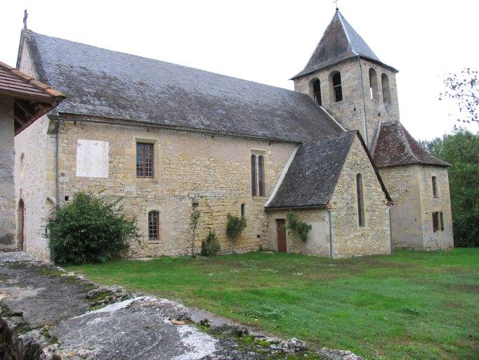Le couvent a été fondé en 1287 par Dieudonné Barasc, seigneur de Montbrun, et placé sous l'autorité d'une prieure qui devait être élue par les religieuses et confirmée par l'abbesse de Leyme ; le monastère a été pillé pendant la guerre de Cent ans puis reconstruit, puis à nouveau dévasté par les huguenots ; en 1668, il compte treize religieuses, et bien que de très importantes réparations aient été effectuées depuis seize ans, il reste encore à faire le mur de clôture et à refaire le vieux corps de logis (L. Greil, op. cit.). Il comptait encore huit religieuses au moment de la Révolution (Combarieu, op. cit.).£Les vestiges qui en subsistent, dont la majeure partie de la tour-clocher actuelle avec la chapelle du rez-de-chaussée, et deux pans de mur ayant peut-être appartenu à des bâtiments conventuels, peuvent dater de la seconde moitié du 13e siècle. En 1497, les moniales font appel à un lapicide de Sarlat, Pierre Esclanche, pour leur construire une nouvelle église (Lartigaut, op. cit.). L'examen des maçonneries permettrait peut-être d'identifier les phases de travaux du 15e siècle, et celles de l'époque moderne. L'état actuel de l'église paroissiale résulte principalement des travaux réalisés au 19e siècle.