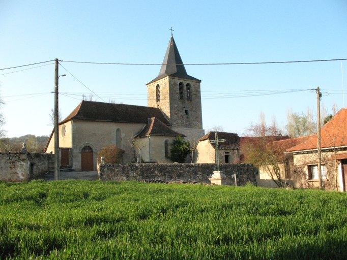Le site a livré des vestiges de constructions gallo-romaines et des sarcophages, autour de l'église et dans la parcelle voisine, depuis le 19e siècle au moins et plus récemment, entre 2006 et 2010, à l'occasion du creusement d'une piscine. De l'église du 12e siècle (?), il ne semble subsister que des vestiges, dont une colonne engagée à l'extérieur dans l'élévation nord, très dégradée. Les deux chapelles latérales peuvent dater de la fin du 15e siècle ou du début du 16e. D'après l'abbé Clary (op. cit.), l'église aurait été restaurée en 1787. D'importants travaux ont cependant été réalisés au 19e siècle, comme l'indiquent le portail et les fenêtres.