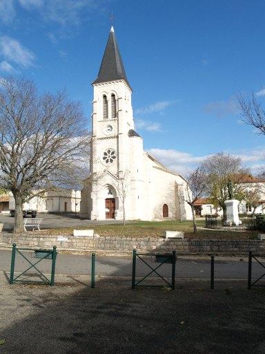 L'église actuelle a été construite dans le bourg vers 1866, en remplacement de l'église paroissiale primitive, Notre-Dame de la Figouse, qui se trouvait en dehors du village (Clary, 1986) ; le clocher a été reconstruit par l'architecte départemental Jean-Gabriel Rodolosse en 1892-1897 (G. Legrand, op. cit.). On suppose que les chapiteaux, bases, clefs de voûte et autres éléments lapidaires en remploi proviennent de l'ancienne église, mais leur variété pourrait indiquer des provenances diverses.£Plusieurs ensembles peuvent être distingués. Les chapiteaux romans du choeur offrent une grande ressemblance avec ceux de l'église Saint-Urcisse de Cahors et ils doivent être datés de la première moitié voire du deuxième quart du 13e siècle (D. Jacoub, op. cit.). Les chapiteaux à crochets feuillagés et feuilles naturalistes plaquées sur la corbeille, également proches d'une autre série de Saint-Urcisse, peuvent dater du deuxième ou du troisième quart du 13e siècle. Les anges de deux culots et les nervures à double cavet sont à placer vers 1500.
