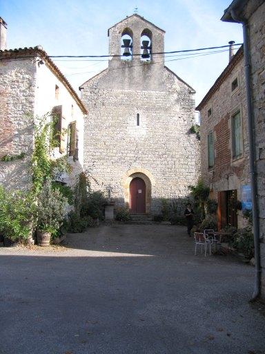 L'église est à nef unique et à abside semi-circulaire. La nef est couverte par une charpente, l'abside et la travée droite de choeur étant voûtées, la première en cul-de-four, la seconde en berceau brisé. Deux demi-colonnes adossées partagent la nef en trois travées. Elles sont surmontées par des chapiteaux dont seuls les deux plus proches du choeur sont ornés. Ils présentent un décor de feuillage et un décor historié traités avec raideur et sont surmontés chacun d'un tailloir souligné par un cartouche, semblable à ceux des églises de Cambayrac et des Arques. Les deux chapiteaux de la travée occidentale sont lisses et surmontés d'un tailloir simplement biseauté. L'arc doubleau séparant la travée de choeur de l'abside repose également sur des chapiteaux à feuillages d'un style proche des précédents. La porte d'entrée, percée au centre de la façade ouest est couverte par un arc faiblement brisé, adouci par une gorge, sous un rouleau extérieur archaïque, caractérisé par le petit module de ses claveaux réalisés dans une pierre jaune différente de celle du reste de l'élévation. Le clocher-mur qui surmonte l'élévation occidentale est réalisé en blocage de moellons bruts.