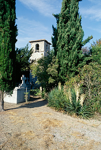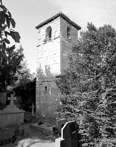 Choeur en pierre de taille, sauf le mur oriental où apparaissent des reprises importantes ; nef en moellon enduit ; clocher en pierre de taille.