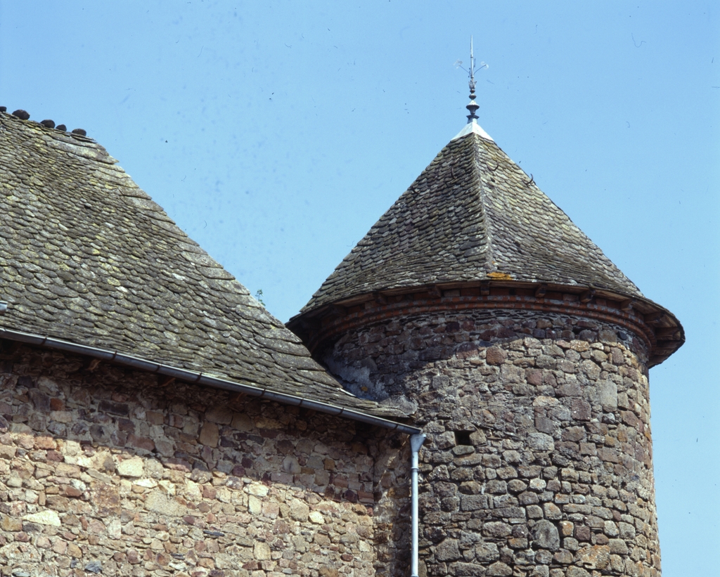 Les principaux corps de bâtiment entourent une cour rectangulaire ouverte en terrasse sur la campagne. Le corps d'entrée, à l'est, s'élève sur deux étages ; il est couvert d'un toit à croupe ; au rez-de-chaussée, un passage couvert voûté en berceau plein cintre mène à la cour ; à l'entrée de ce passage s'ouvre une belle porte d'entrée à fronton brisé. A l'articulation des corps de bâtiment nord et ouest se trouve l'escalier principal du château ; il est à mur noyau ajouré d'arcs rampants retombant sur des colonnes ; les paliers sont voûtés d'arêtes. A l'angle sud-ouest du corps de bâtiment ouest, sans doute le plus ancien se trouve la tour de plan circulaire à quatre niveaux ; son rez-de-chaussée est voûté ; elle est couverte d'un toit conique . L'ensemble est construit avec un appareil de calcaire dans lequel sont inclus de nombreux moellons de grès rouge
