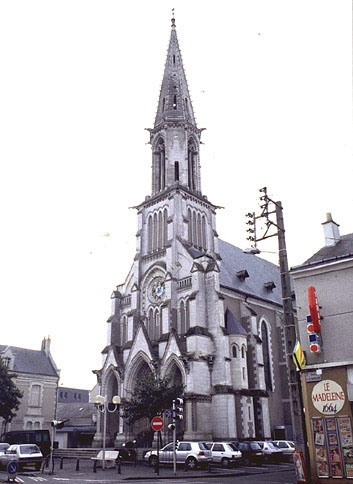 Monument repère sur cette place et centre d'un nouveau quartier qui s'est développé durant les années 1870 avec les extensions bâties le long des rues de la Madeleine et Saumuroise ainsi qu'avec la création de la rue Volney. La façade de l'église, richement composée et précédée d'un porche, se réfère à l'art gothique. De même, les volumes intérieurs avec citation explicite à l'architecture médiévale locale : le transept et le choeur sont inspirés de l'abbatiale Saint-Serge, chef-d'oeuvre du gothique Plantagenêt au 13e siècle.