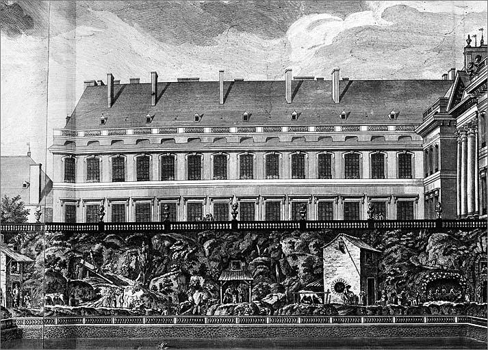 Rocher artificiel aménagé en 1742 pour Stanislas Lecszcinsky contre le mur de soutènement de la terrasse nord du château, le long du grand canal, par l'architecte Emmanuel Héré (1705-1763), qui lui consacre plusieurs pages dans son "Recueil des plans, élévations et coupes ... des châteaux et dépendances que le Roi de Pologne occupe en Lorraine" publié en 1752. Dans ce décor de roches et de grottes, étaient installés 88 automates représentant des personnages et des scènes de la vie quotidienne. Actionnés par des fils de fer mis en mouvement grâce à un système hydraulique, ils furent réalisés, pour la partie mécanique, par François Richard, horloger et fontainier du duc. Fort célèbre en son temps, le Rocher participait à la renommée du château de Stanislas et fut largement commenté. Il est connu aujourdhui essentiellement par 2 sources iconographiques : le Recueil dHéré et un tableau attribué à André Joly (1706-1781), conservé au Musée Lorrain. A la mort de Stanislas, en 1766, l'ensemble fut démonté et les automates, mis alors en vente, ont disparu. La plupart des automates furent enlevés par l'adjudicataire Krantz, ancien fontainier du duc Stanislas. Les quelques vestiges qu'il restait du Rocher au début du 19e siècle formaient un amas de cailloux qui fut rasé vers 1860.