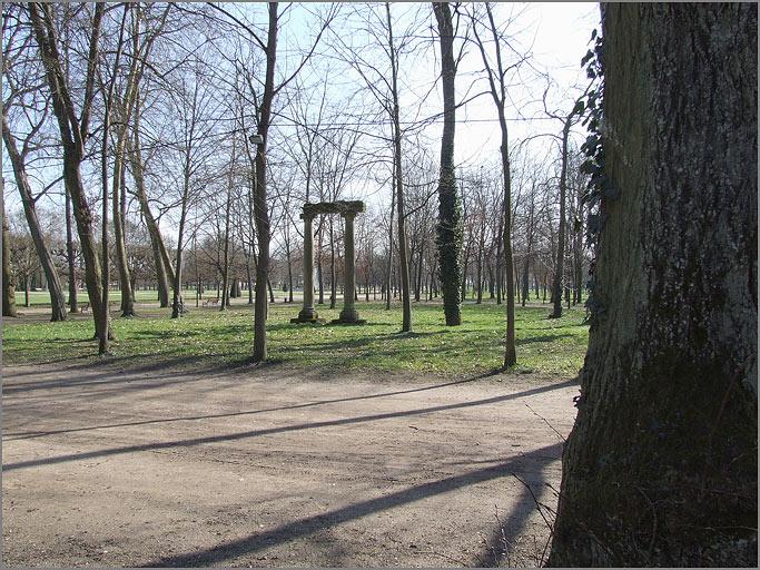 ensemble de 5 fabriques de jardin appelés Salon de la Pêcherie, Comédie Champêtre, Pavillon de la Cascade, Kiosque, Trèfle