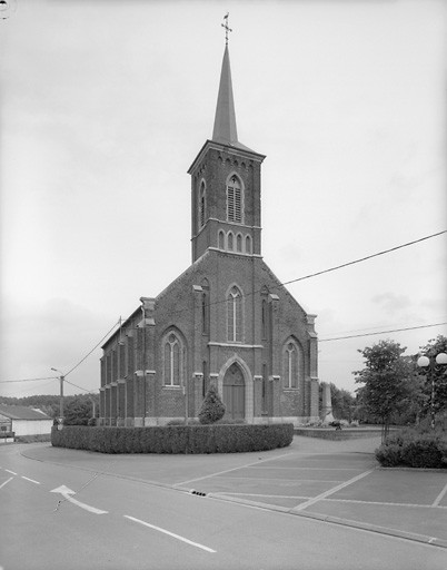 Eglise de style néo-gothique comprenant une tour-clocher. Elévation en brique, soubassement, arcs et chaînage en pierre. Eglise de plan allongé à trois vaisseaux et quatre travées, abside à trois pans. toiture à deux pans couverte d'ardoise en écaille de poisson sur la nef. La tour porche est couverte d'une flèche polygonale brisée en ardoise. La peinture murale du choeur est signé Turpin-Buisine, installé à Lille et datée 1887.
