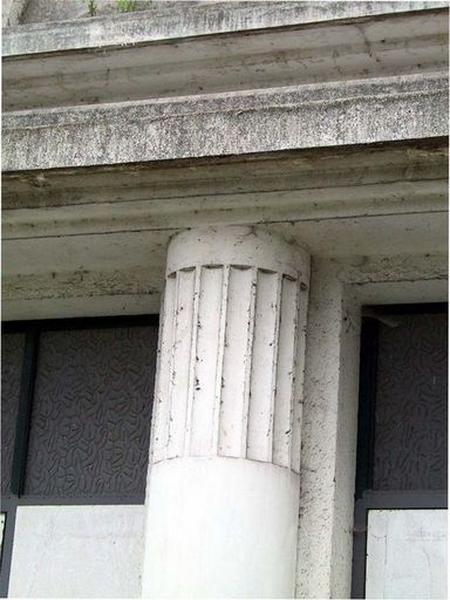 Solarium : motif central représentant les armes de la ville, en mosaïque de couleur et émaux, et décor de marbrerie. Décor en céramique dans l'ensemble du bâtiment.