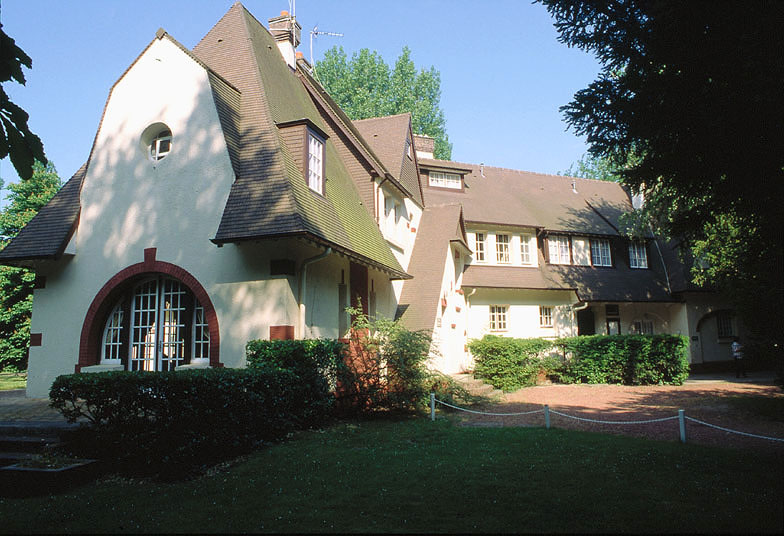 Léon Hoyez, qui reprend l'agence d'Arsène Bical, à la mort de celui-ci en 1924, a présenté cette villa et son plan développé en Y au salon d'automne de 1927. D'après les plans publiés dans " La Construction moderne " le 5 août 1928, elle ouvre sur un grand hall à trois baies ; au rez-de-chaussée, à gauche, une des branches du Y se termine par une chambre à bow window ; à droite, la deuxième branche est constituée du salon et s'achève par la salle à manger. Un escalier tournant en bois partant du fond du hall mène à l'étage de comble. Un couloir, desservant le salon et la salle à manger aboutit à la troisième branche du Y à l'arrière (l'escalier menant au sous-sol part de ce couloir) : il dessert la cuisine, l'office et, à l'extrémité, la salle du personnel. Au-delà de cette branche se trouve un garage pour deux véhicules, indépendant. A l'étage de comble, au-dessus du hall, se trouvent les deux principales chambres ; de part et d'autre, se trouvent salle de bains et cabinets de toilette ; les branches de gauche et de droite abritent chacun une chambre ; à l'arrière la troisième branche, au-dessus des pièces de service et du garage, abrite la lingerie puis, desservie par un couloir latéral, trois chambres de bonne, la chambre du chauffeur, toutes quatre équipées d'un lavabo, la salle de bains des domestiques et un débarras. L'accès à cette partie réservée à la domesticité se fait par un escalier droit longeant l'office (sur le seuil de l'escalier, une porte permet d'accéder directement à l'office). A des dates indéterminées, l'escalier ouvrant sur le hall a été déplacé, le garage a été transformé en logement de domestiques, l'auvent couvrant l'accès au hall a été supprimé et un bow window a été ajouté à chacune des deux chambres situées au-dessus du hall.