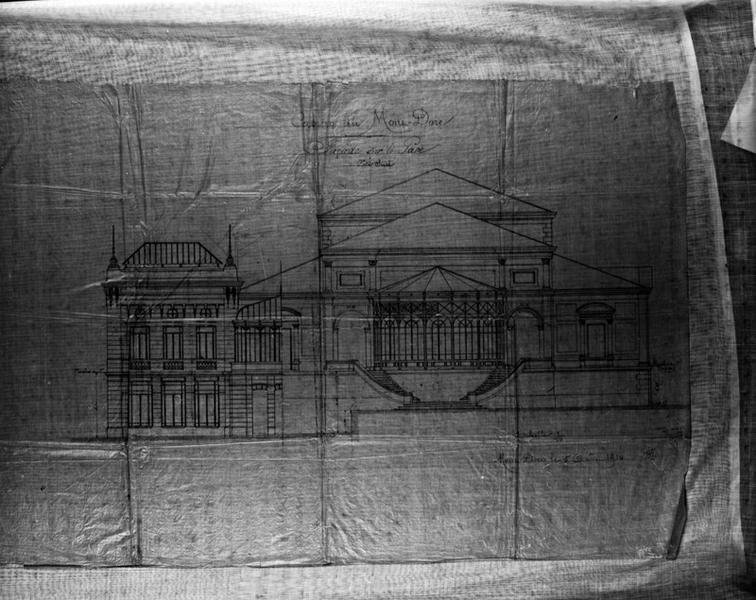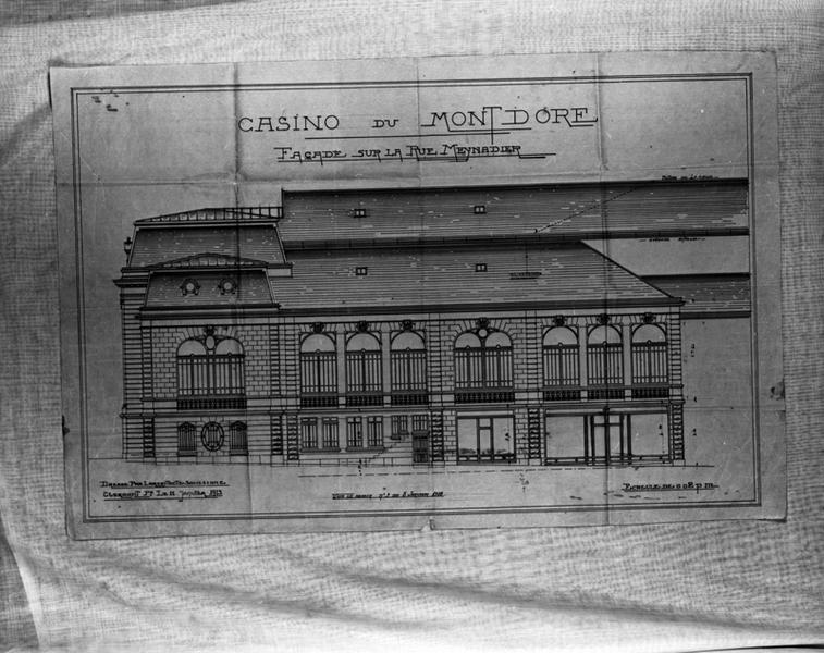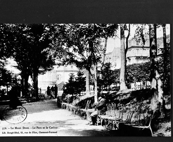 Le premier casino construit pour la station thermale, sur la rue Meynadier, est l'oeuvre de l'architecte Louis-Antoine-Marie Ledru-Gaultier de Biauzat : il travaille sur le projet à partir de 1878, et le bâtiment est inauguré en 1882. Un agrandissement est ajouté côté nord dès 1897, puis un jardin d'hiver est créé en 1905. En 1906-1907, l'architecte clermontois Louis Jarrier est l'auteur de transformations du côté sud-ouest de l'édifice : il y accole un corps de bâtiment destiné à abriter une salle des fêtes et un café. Peu après ces travaux, en 1911, Jarrier est à nouveau sollicité pour un nouvel agrandissement du casino. Il va s'agir cette fois d'une quasi reconstruction de l'établissement de jeux, destinée à redonner de l'homogénéité au bâtiment dont l'aspect est devenu hétéroclite au gré des ajouts successifs : plus précisément, Jarrier doit construire une nouvelle salle des fêtes, réaménager la salle de baccara et "rhabiller" l'ensemble (en particulier les élévations principales sud et est). Plusieurs projets, assez différents les uns des autres, sont présentés par l'architecte entre 1911 et 1913. Les travaux semblent s'effectuer en 1913-1914. D'autres petits aménagements seront programmés dans les décennies suivantes : en 1933-1934, par exemple, l'architecte Ernest Pincot travaille sur un projet (non réalisé) de clôture du parc du casino, de création d'un "garage" dans le parc ainsi que de transformation de la façade sud du casino. En 1947, Ray dessine un projet de cabine de projection cinématographique pour le casino, et en 1949, l'architecte Bosser propose le réaménagement de la "salle des médecins". On ignore si ces différentes transformations ont été réalisées. Utilisé jusqu'en août 1962, ce casino est en effet entièrement détruit à cette date par un incendie. Le bâtiment actuel, rebâti au même emplacement, est une réalisation du cabinet d'architectes Vigneron Frères, et a été achevé en 1966-1967.