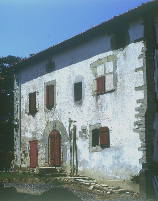 La construction remonte à la première moitié du 17e siècle. Une première restauration a lieu en 1745, date inscrite sur le linteau de la porte de l'élévation postérieure ouest (décor : 5 "lauburus", rosace). Avant 1862, l'édifice abrite le presbytère. À partir de 1862, il fait office d'école publique pour garçons, de mairie, de logement de l'instituteur et de prison. Une deuxième restauration est entreprise en 1874, date inscrite sur la clé de l'arc de la porte de l'élévation antérieure est, accompagnée de l'inscription "MICHEL DURRUTY ET MARIE EYHERABIDE L'AN 1874". À cette occasion, une porte rectangulaire à encadrement de bois est construite à l'intérieur même de l'arc en plein-cintre à gros claveaux de la porte originelle, partiellement murée. De même, les ouvertures de l'élévation latérale nord sont refaites.