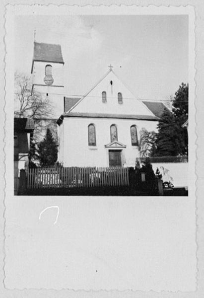 L'église non orientée comporte des murs en moellons avec et sans chaînes d'angle (façade antérieure, ancien choeur) et des murs en béton (nef de 1965). La nef de plan rectangulaire se termine par un choeur à une travée droite et abside à 3 pans. La chapelle latérale (choeur de l'église de 1749) , plafonnée, a le même plan que celui-ci. Le clocher, à chaînes d'angle en pierre de taille de grès, est en brique et béton (dernier niveau).