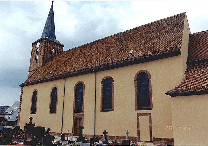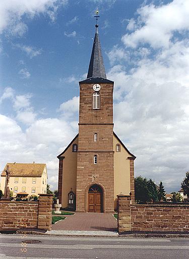 La nef et le choeur de l'église ont été reconstruits en 1767, date gravée sur le soubassement du mur sud de la nef. En 1859, l'architecte de l'arrondissement de Wissembourg, Alexandre Matuszinski fut chargé d'agrandir la nef (en doublant son volume) et d'élever un clocher-porche à l'ouest. L'arc au-dessus de la porte est gravé de la date et d'une inscription : DEO OPTIMO/EX VOLUNTARIIS PAROCHIANORUM DONIS EXSTRUCTA. Le devis primitif fut approuvé en 1858 et les travaux adjugés en 1859 à l'entrepreneur Pflug d'Oberbetschdorf. Les travaux furent achevés en 1861, après l'acceptation d'un devis supplémentaire pour le revêtement extérieur en pierre de taille. Les chaînes d'angle à refends de l'ancienne nef furent remployées.