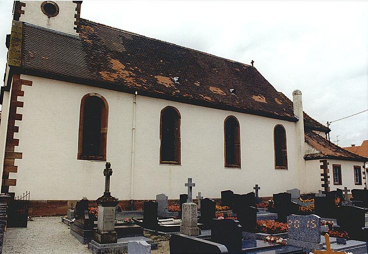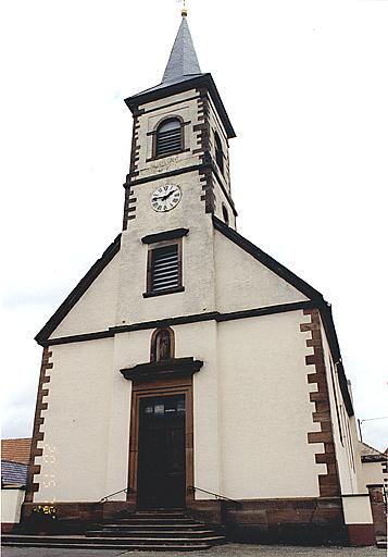 D'après P. Meyer-Siat, la nef de l'église date de 1752 (source inconnue) ; on peut ajouter que la croix de cimetière porte la date 1761 et les autels secondaires celle de 1765. Une porte latérale à crossettes, aux épaisses moulures, est très semblable à des chambranles rencontrés à Biblisheim (église remployant des vestiges de l'abbaye de cette localité) et à Durrenbach (église du 18e siècle détruite en 1910). Les fenêtres de la nef portent sur leurs ébrasements des marques de tâcheron : P, T, A, L. En 1829, la commune décida d'agrandir l'église : le projet comprenait la démolition de la tour-choeur menaçant ruine, la construction d'un nouveau choeur et d'une sacristie et l'agrandissement de la nef vers l'ouest avec ajout d'une tour-porche. Le premier projet fut remanié par l'architecte de l'arrondissement de Wissembourg, Louis Martin Zégowitz et exécuté de 1830 à 1833 par l'entrepreneur Jacques Sorg de Niederbronn (la croix placée sur le faîte du toit de la nef à l'est porte la date 1831 et l'orgue placé sur la tribune ouest date de 1837). Restauration intérieure en 1992 par l'entreprise Muller et fils de Froeschwiller.