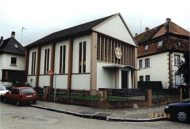 La synagogue actuelle fut inaugurée en 1960. Elle remplace celle, détruite pendant la dernière guerre, qui fut construite par l'architecte Roehrich entre 1869 (pose de la première pierre) et 1871 (date d'inauguration). Les juifs disposaient autrefois déjà d'une synagogue et au 19e siècle d'une école. La synagogue de 1805, signalée par Jarassé, ne se trouvait pas au même emplacement car ne figure pas sur le plan d'alignement de 1841-44.