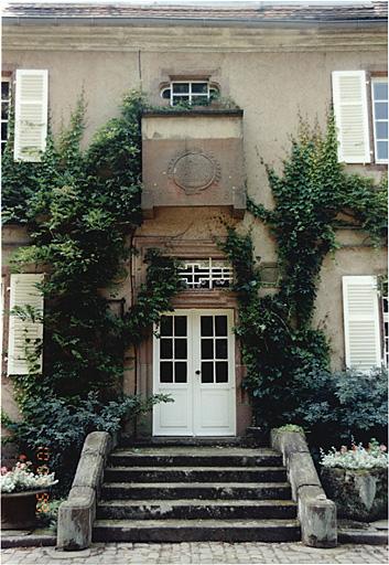 La demeure principale est en grès avec chaînes et grand toit à croupes. Elle comporte un étage sur rez-de-chaussée et cave, une tour centrale dans-oeuvre, à 2 étages, précédée d'un petit porche et une aile en retour à l'arrière avec terrasse dans l'angle, remaniée et abaissée. La partie gauche de la maison et la tour correspondent en grande partie à l'état représenté sur un dessin de 1882. La porte moulurée avec crossettes est d'origine. Accolé au nord de la demeure, se situe la maison du personnel, en rez-de-chaussée, en pan de bois de style néo-régional, avec une fenêtre en bois sculpté de style Renaissance. Les bâtiments annexes sont en grès ; une dépendance agricole est en grès et pan de bois. La maison forestière à l'est, de style néo-régional, est en maçonnerie et pan de bois. La fontaine est étudiée dans la base Palissy.