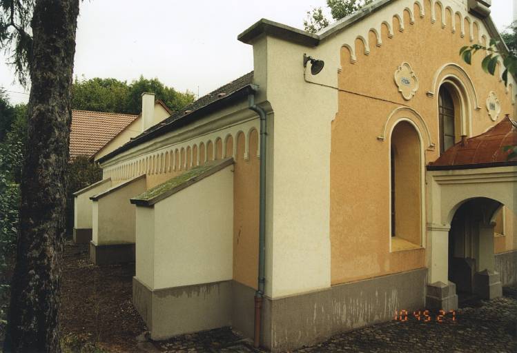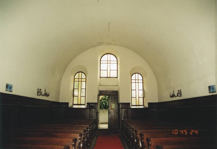 Bâtiment de style néo-roman, situé en contrebas de la rue, dans un jardin. Murs très épais en maçonnerie de pierre crépie, couronnés de frises d'arceaux ; voûte en berceau, en brique, contrebutée par six contreforts massifs. Sur l'élévation sud, deux quadrilobes avec millésimes 1708 et 1888 et en saillie, petit porche voûté d'arêtes avec toit galbé ; sur le pignon, campanile en briques, à deux baies sur colonnette et inscription pieuse (en allemand). Au nord, petite sacristie axiale.