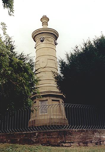 Monument en forme de colonne sur un piédestal polygonal. Plate-forme polygonale entourée d'un garde-corps en fer. Des écus en relief portent les noms de trois villes : Sedan, Paris, Woerth. Têtes de lion en métal, rapportées. Hauteur approximative : 8 m.
