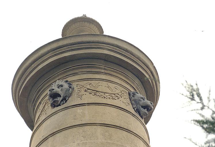 Têtes de lion (rapportées) ; guirlandes entre les têtes ; urne au sommet ; aigle (disparu).