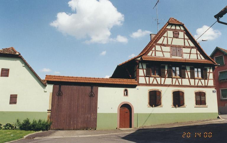 Logis portant la date 1766 sur le linteau de la porte d'entrée, avec les initiales du commanditaire I. S. T. Sur la porte de cave, marque lapidaire et les initiales : I. S. T. / M. K. L'étable et la grange sont probablement contemporaines du logis.