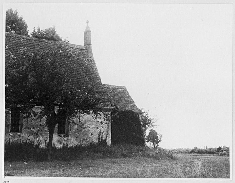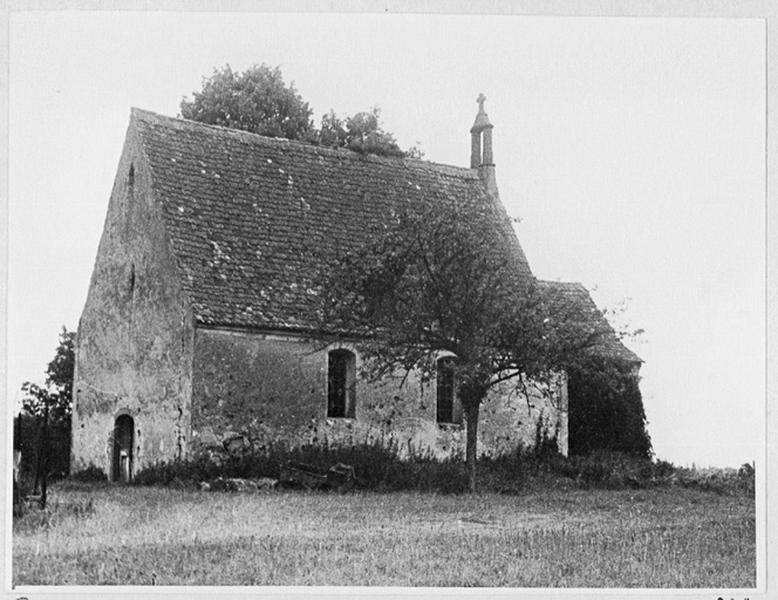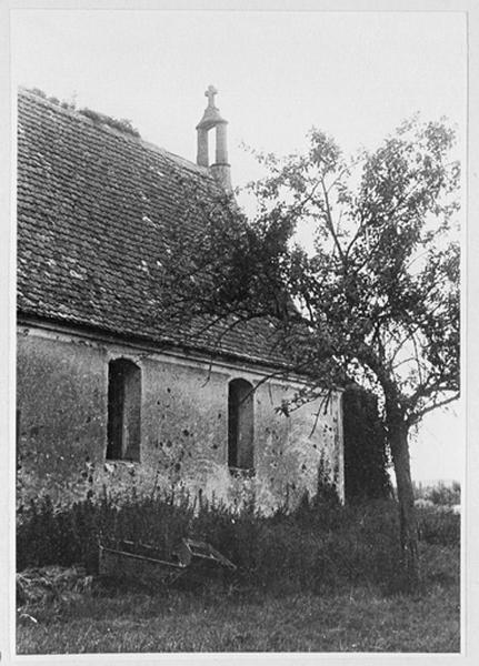 Edifice orienté de proportion modeste composé d'un vaisseau quadrangulaire et d'un choeur saillant accolé à l'est. De deux travées, ce vaisseau est percé de fenêtres en arc segmentaire sans chambranles et, une porte, avec chambranle en plein cintre, positionnée axialement sur le mur pignon ouest le dessert. Un toit à pans en tuiles de terre cuite en écaille le couvre. Un campanile prend place sur son faîte à l'est. De moindres dimensions le choeur est à chevet plat. Couvert d'une toiture identique à celle du vaisseau, il est muni de baies à arc segmentaire sans chambranles implantées sur les murs gouttereaux et le chevet, celle du chevet étant aveugle. Les deux volumes présentent des chaînes harpées reposant sur une base chanfreinée aux angles nord-ouest, sud-ouest, nord-est et sud-est. La porte, les chaînes d'angles, le campanile, ont été exécutés en grès. Nef et choeur communiquent par le concours d'un arc triomphal en arc brisé. Tous deux sont plafonnés. Le décor peint occupe la partie haute du mur ouest. Les vestiges d'un sol en carreaux de terre cuite subsistent dans le vaisseau.