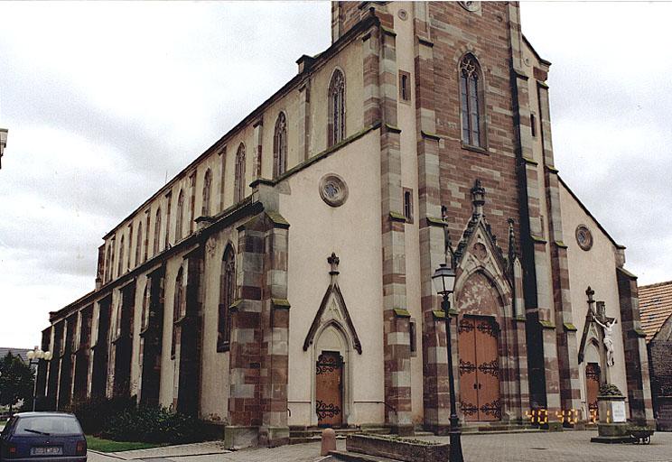 En raison d'un accroissement conséquent de la population au cours de la 1ère moitié du 19e siècle, l'église paroissiale médiévale, positionnée sur le flanc est de l'agglomération, se révèle insuffisante. La municipalité de l'époque, confrontée à ce problème, décide en 1849 de le résoudre en édifiant un nouveau lieu de culte plus vaste et, dans la foulée, de le bâtir plus au centre du village, sur une parcelle de terrain occupée par une exploitation agricole. Celle-ci sera démontée et déplacée. La construction de l'église n'est amorcée qu'en 1864, date de la pose de la première pierre. Edifié selon les plans et les directives de l'architecte de l'arrondissement de Sélestat, Antoine Ringeisen, le chantier s'achève à la fin de l'année 1866.