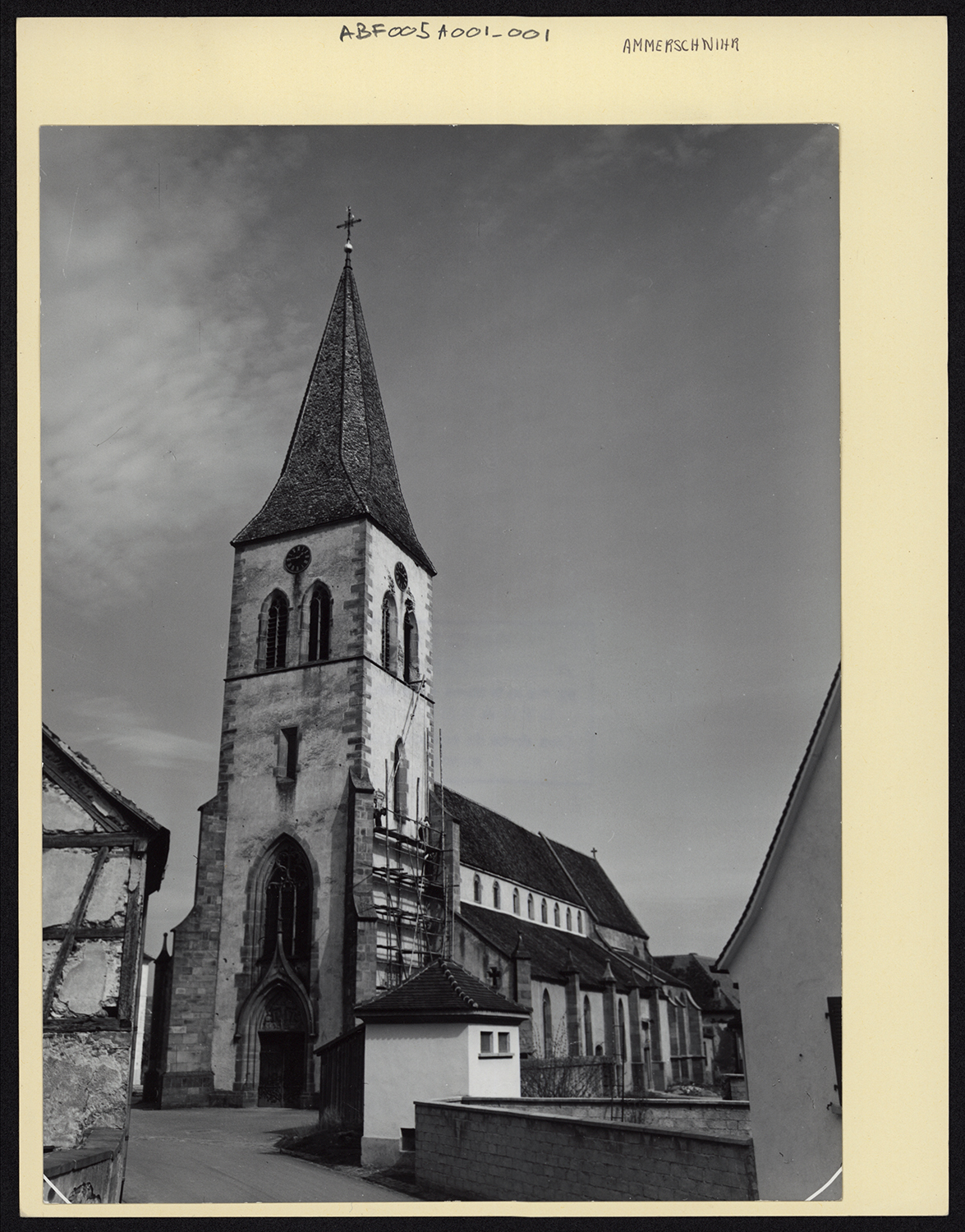 Un 1er édifice religieux est mentionné en 977. L'église est attestée en tant que paroissiale en 1149. Le choeur et ses chapelles qui pourraient dater du 15e siècle n'ont peut-être été reconstruits que vers 1528, date gravée sur le linteau de la porte donnant accès du choeur à la sacristie sud. La tour était plus ancienne à en juger par les photographies antérieures à sa reconstruction et par les réseaux conservés. La nef fut reconstruite, selon les travaux historiques, entre 1564 et 1585 par l'architecte Claus Wiegand. Les clés de voûtes du choeur et du vaisseau central portent les armoiries des 3 seigneurs de la ville. La tour fut remaniée en 1778 : les tourelles d'angle qui pouvaient servir au guêt furent détruites et les baies occidentales gothiques furent remplacées par un portail à fronton interrompu et une grande fenêtre. Au début du 19e siècle des stalles et lambris habillèrent le choeur. Winckler fit un 1er projet d'agrandissement en 1889, puis Joseph Heilig en 1899. Finalement un concours d'architectes fut lancé en 1904 pour l'agrandissement de l'église. L'architecte Keith fut le lauréat. Les travaux, selon son projet, furent dirigés par l'architecte colmarien Christian Schoffit. La nef fut allongée d'une travée vers l'ouest. La tour médiévale dans-oeuvre fut détruite et remplacée par l'actuelle tour néo-gothique, hors-oeuvre côté sud, demi hors-oeuvre côté nord. Trois réseaux de fenêtres de l'ancienne tour subsistent, encastrés dans le mur de clôture du presbytère. L'escalier en vis (vers la tribune) du 16e siècle fut remonté dans l'angle sud-ouest. Les travaux furent achevés en 1912 par la réalisation du tympan du portail néo-gothique sculpté par Pierre Heusch, représentant le Trône de grâce. En 1936 l'ancienne crypte médiévale fut comblée et la sacristie nord fut construite. Le sol du choeur fut légèrement abaissé, la porte de la sacristie sud (linteau daté 1528) fut probablement transformée. Les toitures endommagées pendant l'hiver 1945 ont été refaites et l'église a été restaurée.