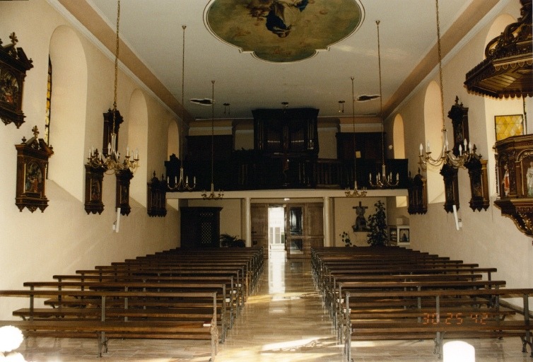 L'église et le cimetière qui l'entoure sont situés sur une terrasse à flanc de coteau. L'église se compose d'une nef à 4 travées, d'un choeur à 5 pans avec sacristie accolée au sud, d'un clocher porche hors oeuvre à 3 niveaux, couvert d'un toit à bâtière surmonté d'une grille en fer forgé. Porche d'entrée : arc en plein-cintre à extrados en escalier surmonté d'une croix. Le clocher est éclairé par une fenêtre médiévale en arc brisé au rez-de-chaussée (face sud) , une fente d'éclairage au 2ème niveau et une fenêtre en plein-cintre au niveau du beffroi des cloches. Chaînages d'angle aux angles de la nef. A l'intérieur, décor simple : moulure faisant le tour de la nef, plafond peint. Tribune d'orgue soutenue par 2 poteaux.