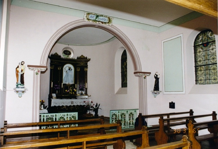 Le plan général est simple : nef rectangulaire à 2 travées prolongée par un chevet semi-circulaire. La porte cintrée est surmontée par une fenêtre géminée. Un campanile en bois surmonte la toiture.