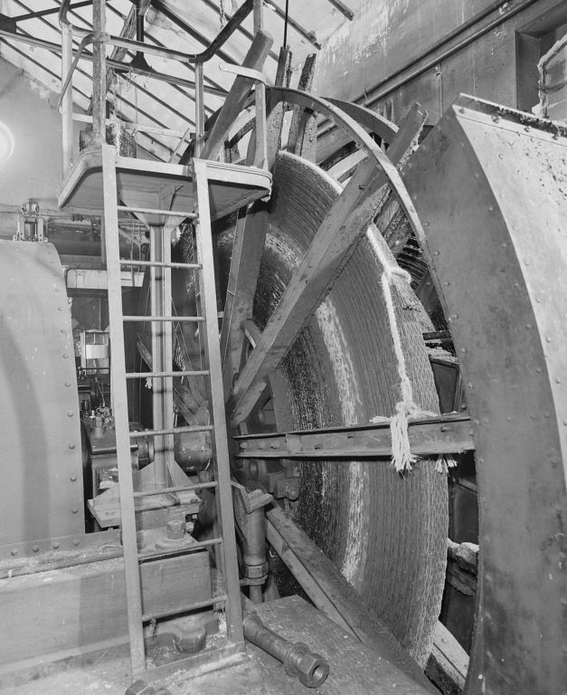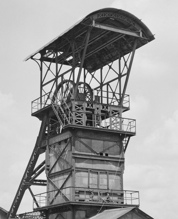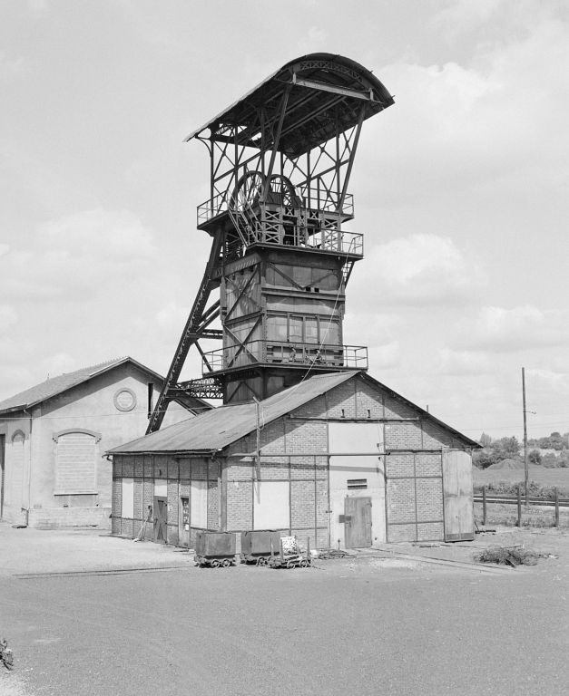 bâtiment de la machine d'extraction ; chevalement ; puits d'aérage ; bâtiment de recette ; magasin industriel