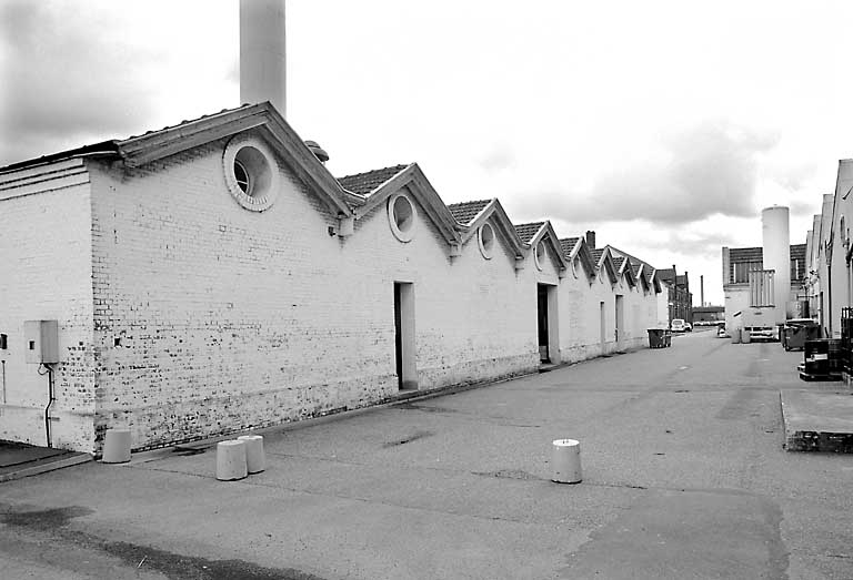 Les ateliers de fabrication sont en rez-de-chaussée, couvert en shed. Bureau en rez-de-chaussée et étage de comble, toit à longs pans, pignon couvert. Les logements d'ouvriers sont construits en bande, en brique, sur un étage carré ou en rez-de-chaussée. Les logements de contremaître en brique et silex, s'élèvent sur un étage carré, toit à longs pans, pignon couvert. Le logement patronal construit en brique sur un étage carré et un étage de comble, toit à longs pans, croupe, se trouve dans l'enceinte même de l'usine. L'infirmerie construite en rez-de-chaussée était percée de larges baies en arc plein cintre. Les remises ou écuries sont construites en rez-de-chaussée surélevé et étage de comble, toit en pavillon, ardoise en couverture, lucarne. Le café est construit en parpaing de béton et enduit sur un étage carré et un étage de comble.