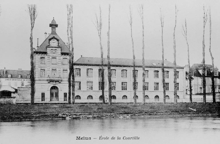 En 1884, la Ville de Melun achète une propriété située entre la rue du Franc-Mûrier et le quai de la Courtille, pour y construire une école de garçons remplaçant celle de la rue des Potiers, jugée trop petite et insalubre. Le concours organisé en 1888 est remporté par Georges Guyon, architecte à Saint-Maurice. Mais l'édifice est réalisé selon le cahier des charges de Touzet et Trintzius, architectes à Rouen et second prix du concours, de 1888 à 1892. L'édifice reçoit une extension en 1952, sur les plans des architectes Paupe et Leroux. L'école de la Courtille accueille aujourd'hui des cours universitaires (faculté de droit Paris-Assas).