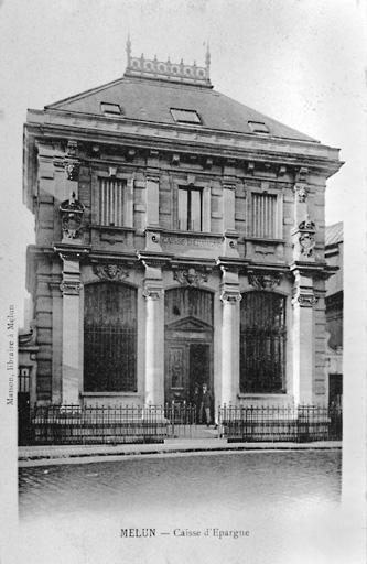 La caisse d'épargne présente une façade de trois travées avec accès central. Cette façade est soignée, avec un décor de colonnes et pilastres ioniques au rez-de-chaussée. Les clés des baies du rez-de-chaussée sont en outre ornées de têtes en relief, dont celle de Mercure (à droite).