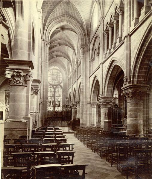 C'est un édifice à chevet plat sans transept qui se compose d'une nef centrale flanquée de deux bas-côtés d'inégale largeur. Le collatéral sud est deux fois plus étroit que le collatéral nord. Des chapelles ont été ouvertes sur quatre travées du collatéral sud. Malgré sa taille relativement réduite, l'église a connu plusieurs phases de construction et remaniements qui expliquent certaines disparités. Le plan avec le désaxement de la nef par rapport au chur en est une. L'élévation, à trois niveaux dans tout l'édifice, présente des variations de détail qui sont à noter ; côté sud, le triforium dans le chur comporte six arcades dans les deux premières travées et cinq dans la travée suivante. Les trois fenêtres hautes de ce côté sont composées d'oculi sans lobes. Mais il n'est pas certain qu'elles soient toutes authentiques puisque le relevé fait par Baudin en 1874 pour les Monuments Historiques montre que la 3e travée avait une ouverture en arc brisé. Il est vrai que sur ce même relevé la travée avec la fausse tribune a une fenêtre haute en oculus il s'agit donc peut-être d'une inversion lors de la mise au propre. Cette travée suivante comporte une ouverture à double arcature directement inspirée du chur de Notre-Dame. Mais dans son état actuel, cette travée est incompréhensible : elle est murée et donc ne donne pas sur un quelconque passage. Les ouvertures hautes sont toutes en arc brisé de ce côté. Le triforium comporte 4 arcades par travées. Ses colonnettes en délit reposent sur des plinthes cubiques très hautes. Les colonnettes qui soutiennent les ogives et les formerets sont interrompues par une bague qui continue la mouluration de la base du triforium, ce qui n'est pas le cas dans le chur où les colonnettes sont ininterrompues jusqu'au départ des voûtes. Les voûtes d'ogives les plus archaïques se trouvent dans les quatre travées les plus occidentales du bas-côté sud. Elles sont composées de simples tores en boudin. Les voûtes d'ogive sont homogènes dans le chur et la première travée de la nef : deux tores. Dans les quatre travées les plus occidentales de la nef ce sont de simples tores au profil moins archaïque que dans le bas coté occidental. Les voûtes d'ogives du collatéral nord ont un profil beaucoup plus effilé et complexe mais elles on probablement été refaites en 1874 à la suite d'un effondrement d'une partie des travées. C'est à cette occasion que les tailloirs des chapiteaux des demi-colonnes ont été refaits. Le collatéral nord comportait deux entrées, l'une à l'ouest qui a été murée et l'autre à l'est qui existe toujours.