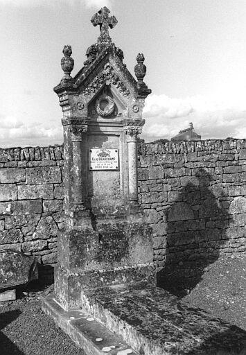 Situé dans la partie ancienne du cimetière, le tombeau est composé d'une semelle en ciment, d'une dalle plate et d'une stèle au fronton triangulaire retroussé avec des amortissements en forme de pots à feu. La stèle est ornée de sculptures et sommée d'une croix.
