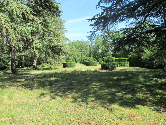 Ensemble intéressant de jardin de buis de périodes chronologiques différentes, et vestiges rares d'un jardin à l'italienne en terrasses du 17e siècle.