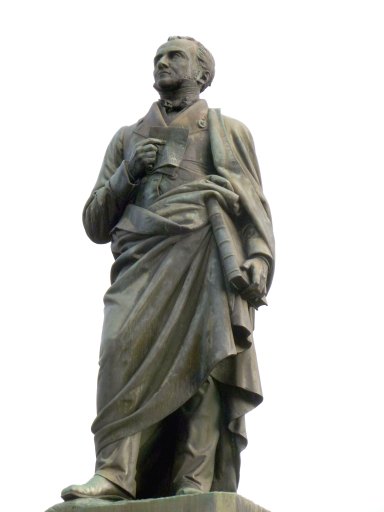 La statue représente Emmanuel de Las Cases (1766-1842), célèbre mémorialiste de Napoléon, né dans le Tarn près de Revel. Le "Mémorial de Sainte-Hélène" est un récit dans lequel Las Cases a recueilli les mémoires de Napoléon Bonaparte au cours d'entretiens quasi-quotidiens, lors de son séjour à Sainte-Hélène. La statue qui lui rend hommage fut un temps prévue pour être installée devant le palais de justice. Commandée par le département et la ville, elle fut inaugurée dans les jardins de l'Evêché le 8 octobre 1865, en présence de son fils Barthélemy et des notabilités du département. Elle a été sculptée par Jean Bonnassieux en 1863, sculpteur ayant remporté en 1836 le Grand prix de Rome pour son oeuvre "Socrate buvant la cigüe", conjointement avec Auguste Ottin. Elle a été fondue dans les ateliers Voruz à Nantes.