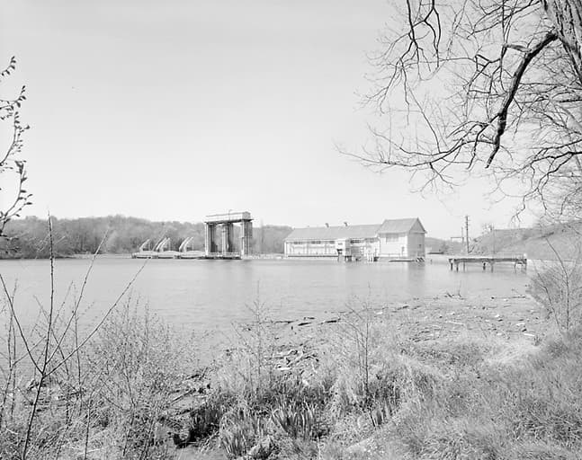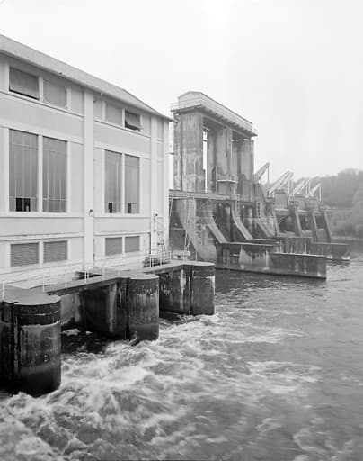barrage ; salle des machines ; transformateur (abri) ; atelier de réparation