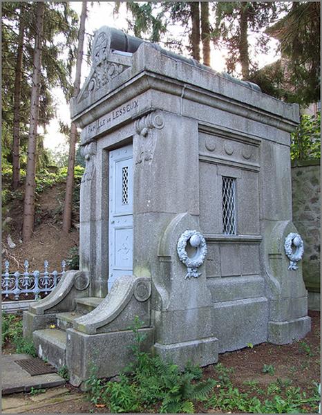 La chapelle funéraire en granite gris, construite sur les plans de l'architecte Schuler et sculpté par Colin. L'édifice est entouré d'une grille de fonte, à décor rapporté, il est de plan carré, sa façade est surmontée d'un fronton triangulaire amorti d'une croix inscrite dans un cercle.