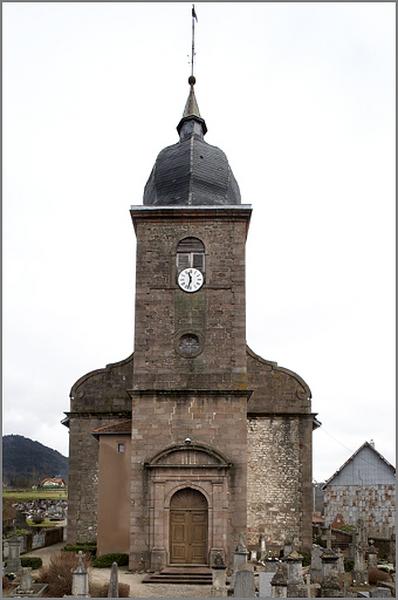 La communauté de Colroy-la-Grande est une annexe de la cure de Provenchères-sur-Fave jusqu'en 1710 où est érigé le vicariat de Colroy-Lubine, elle est séparée de Lubine en 1803 (?). Eglise reconstruite en 1772 sur les plans de l'architecte Carbonnar par les entrepreneurs Joseph Stegmiller et Joseph Mengin (maître maçon et tailleur de pierre à Saint-Dié) , seule les fondations de l'ancienne tour sont réutilisées. Dés 1686 le clocher de l'ancien édifice situé sur le choeur "menace ruine par le haut" (ADV G513) , l'autorisation de reconstruire est donnée par le chapitre de Saint-dié en 1770 dans un mémoire "attendu que le choeur est trop petit pour célébrer avec décence l'office divin et que la nef est insuffisante pour contenir le paroissiens, que l'église entière est vielle et caduque, les réparations urgentes et très considérables, il a été ordonné que les paroissiens pourvoiraient pour la reconstruction de leur église, il n'y a que la construction de la neffe et de la tour qui les concerne ; messieurs du chapitre comme décimateur sont obligés à celle du choeur ". L'architecte Carbonnar dresse les plans et suit les travaux, dans procès verbal de visite il note que "le choeur est très mal construit, mur du fond en biais, le mortier manque de chaux, les piédroits des doubleaux sont alternativement de 18 et 24 pouces". Les travaux d'entretien se succèdent : 1833 : remplacement des bardeaux de la toiture nord de la nef, 1856 : réparation du beffroi et des cloches, 1869 : remplacement des boiseries du choeur, 1871 : remplacement de l'horloge, 1879 : demande de réparation urgente car "la nef entière menace de s'éfondrer", 1882 : construction de la deuxième sacristie. En 1884 de gros travaux sont entrepris pour consolider la charpente, les arcs et les cintres grâce à la pose de gros fer et à la plâtrerie complète de l'édifice (choeur, nef, 15 cintres de fenêtre, 30 retombées formant chapiteau, 18 chapiteaux et pilastres). Les travaux seront complétés par le murage de l'imposte de l'imposte de la porte latérale et la niche des fonds baptismaux et par la pose de vitraux en grisaille dans le choeur. Les dommages de la guerre 1914-1918 sont importants : toiture de la nef et du dôme endommagées, cloches emportées, horloge, vitraux détruits (13 sur 15) , lézardes dans l'arc entre la tour et la nef, sur le coté de la tour, autel latéral gauche détruit, maître autel détérioré. Les travaux qui suivront seront radicaux : démolition des pilastres et de l'ancienne voûte, maçonnerie en brique de la partie supérieure des murs latéraux et construction d'une nouvelle voûte en béton armé et métal déployé, cerclage de la tour (401923 F.).Au milieu du 20e siècle, la charpente est à nouveau entièrement reconstruite, des poutres en béton traversent transversalement l'édifice, elles servent d'appui à des pignons maçonnés en parpaings sur lesquels reposent les pannes de la charpente.