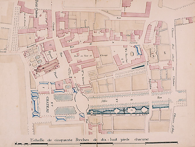 La façade sur le parc du château du corps de logis principal, converti en orangerie, a reçu vers 1905 un revêtement brique et pierre. Les autres façades sont enduites.