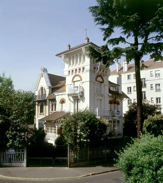 Maisons dont les façades sont complexes mais dont la composition est conçue pour former visuellement un même édifice ; la façade antérieure est composée de droite à gauche d'un haut pavillon formant belvédère accosté de la travée d'entrée de l'une des maisons. L'édifice se poursuit avec une travée formée de groupes de fenêtres juxtaposées, cintrées à l'étage, d'une façade pignon et du porche d'entrée de la seconde maison. L'édifice entre dans la typologie des villas avec tour belvédère à l'italienne que plusieurs architectes de la fin du 19e et du début 20e déclinent tout particulièrement dans les lieux de villégiature où la vue oriente les constructions. L'architecte a beaucoup joué sur les décrochements, la multiplication des balcons, les auvents, les loggias, la variation des formes de toits ainsi que sur le dessin des baies, cintrées, rectangulaires ou de type thermal. Le décor, dont plusieurs éléments de céramique ont disparus, était abondant comme en témoignent les colonnes au fort galbe des loggias d'entrées et les jeux de courbes qui animent tout l'édifice par le traitement cintré des aisseliers soutenant auvents, toits et balcons.