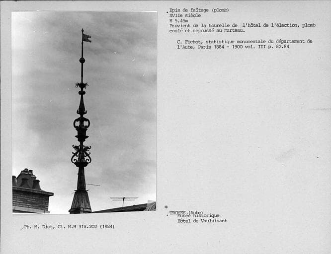 © Monuments historiques, 1992. Cette notice reprend intégralement les termes de l’arrêté de protection au titre des Monuments historiques. Elle répond à l’obligation réglementaire du ministère de la Culture d’établir la liste générale des immeubles protégés (art. R. 621-80 du Code du patrimoine). Elle est donc opposable et fait foi juridiquement. Aucune copie numérique ou papier ne sera fournie par courrier ni courriel. Le dossier de protection complet et l’arrêté sont consultables uniquement sur place, dans la salle de lecture de la Médiathèque du patrimoine et de la photographie (MPP), à Charenton-le-Pont (Val-de-Marne).