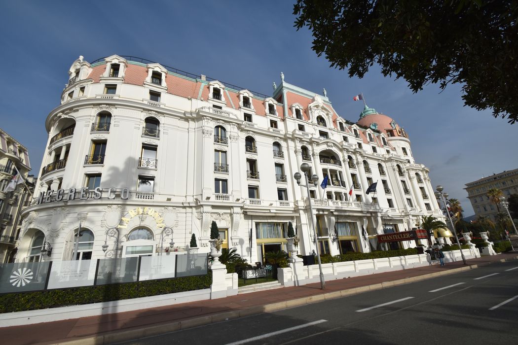 Hôtel créé à l'inititative de Henri Négresco, fils d'un aubergiste roumain arrivé à Nice en 1902. Financé par l'industriel de l'automobile Alexandre Darracq, et dessiné par l'architecte parisien Edouard Niermans, l'hôtel est inauguré en 1912. Pendant la première guerre mondiale, il est transformé en hôpital militaire. C'est un des rares survivants de l'hôtellerie du début du 20e siècle.