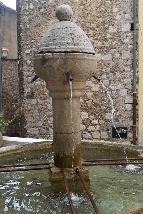 Place avec sa fontaine, son dallage en cailloux, la loge à colonnes à gauche et la façade de l'ancien palais des consuls à droite : inscription par arrêté du 30 septembre 1942